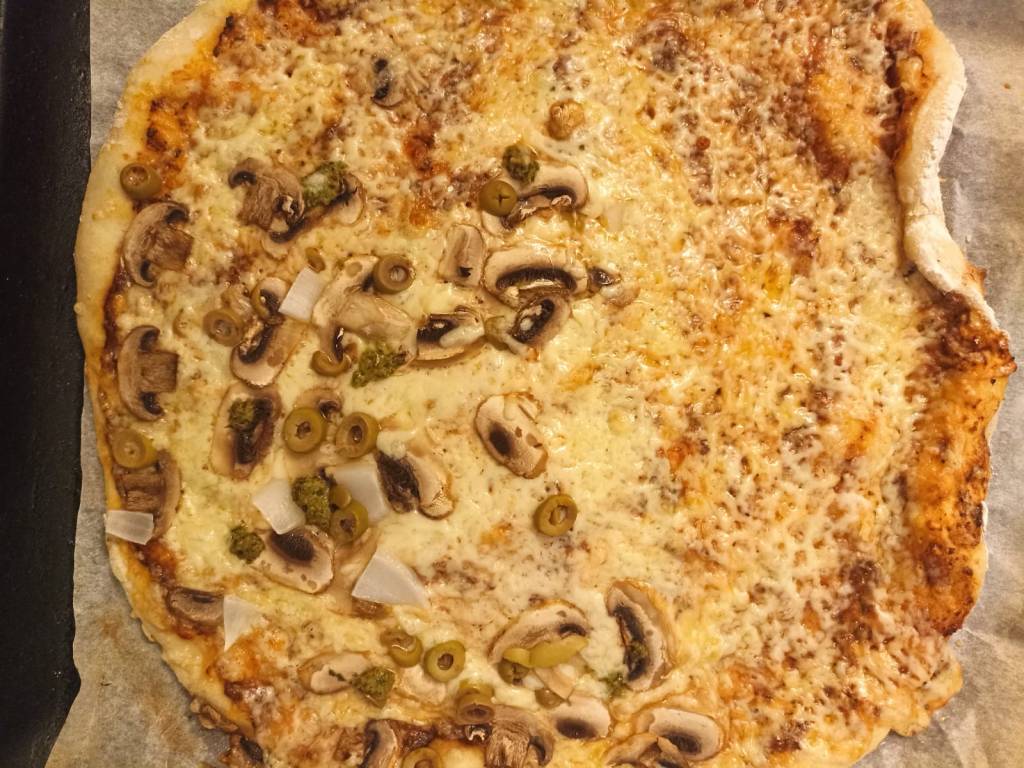If you want a dough recipe that’s even easier and faster, try this one – it’s great! Or buy ready-made dough from a bread store or pizza store. They sell it by the kilo and you can keep it in the freezer to defrost when you want it. https://www.allrecipes.com/recipe/244447/two-ingredient-pizza-dough/