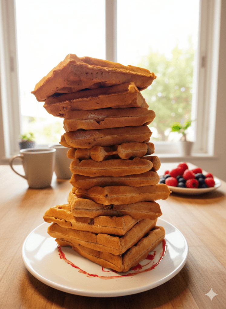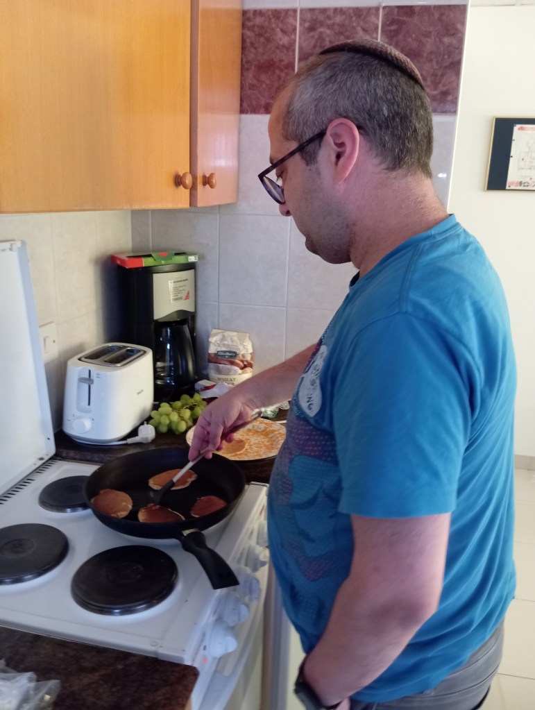 - Serve your waffles and/or pancakes with syrup or any other toppings of your choice – if they don’t get inhaled before they make it to the table. Fiona prefers to go savory and eat hers with avocado and salt or with cottage cheese and olives. With coffee, of course. You do you. B’teavon!